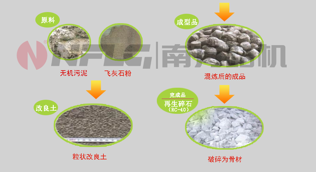 南方路機創(chuàng)新性的余泥造粒再生裝備及工藝,是利用固化技術(shù),讓建筑余泥、石粉等經(jīng)過設備處理之后成為粒狀改良土和再生骨料的技術(shù)工藝。