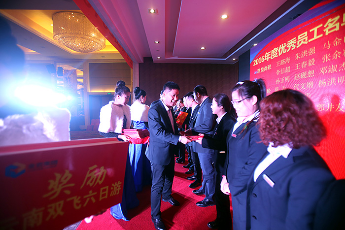 公司領(lǐng)導(dǎo)感謝全體員工一年來的辛苦付出,并頒發(fā)了年度杰出經(jīng)理人、銷售精英、年度最佳團隊、質(zhì)量控制先鋒以及年度員工代表和優(yōu)秀員工等獎項,表彰了在2016年工作中表現(xiàn)優(yōu)異的先進個人和集體。