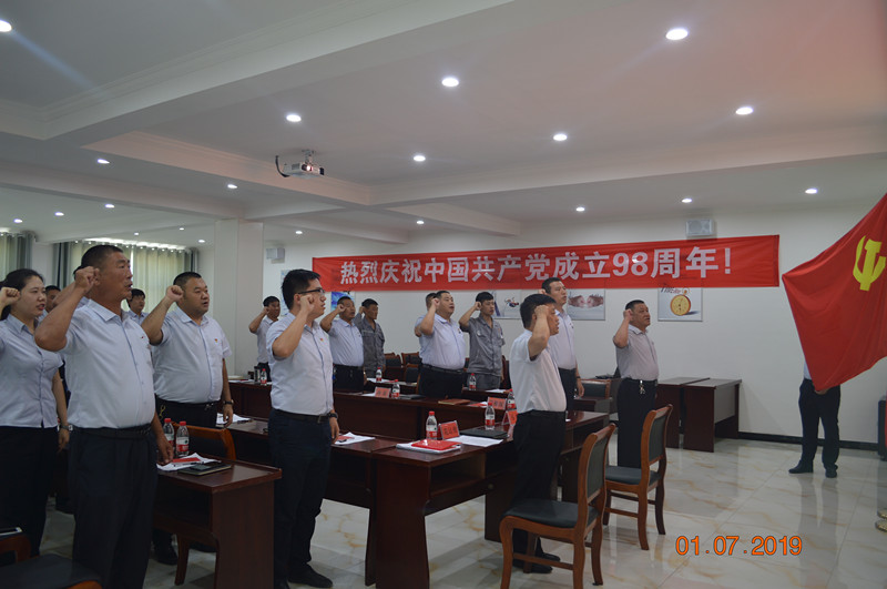 14:30分,黨員會議正式進入議程。集團黨支部委員辛金玉同志主持會議,全體黨員同志肅然起立,面對黨旗,再次莊嚴宣誓,聲聲入耳的莊嚴誓詞在會議室內(nèi)縈繞回響,響亮的聲音昭示著全體共產(chǎn)黨員的堅定決心和無畏意志!