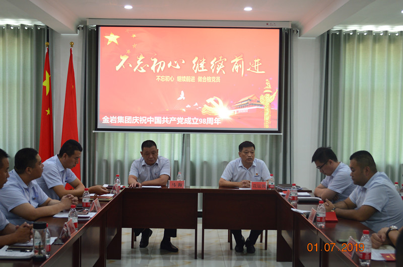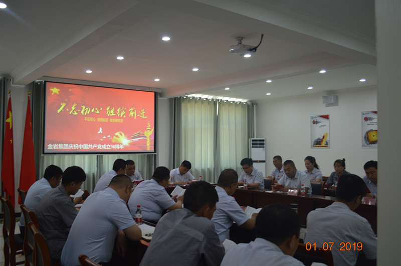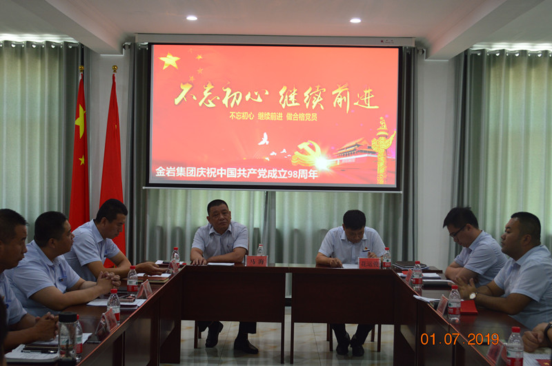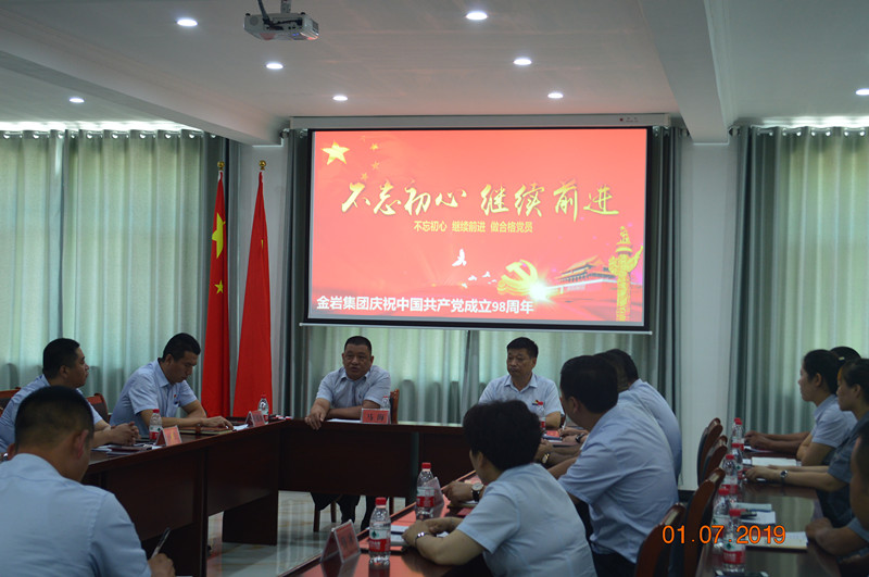 金巖集團黨支部于2019年7月1日黨的生日組織全體黨員及入黨積極分子并邀約集團各級領導在公司會議室開展以“不忘初心、牢記使命”為主題的學習座談會。